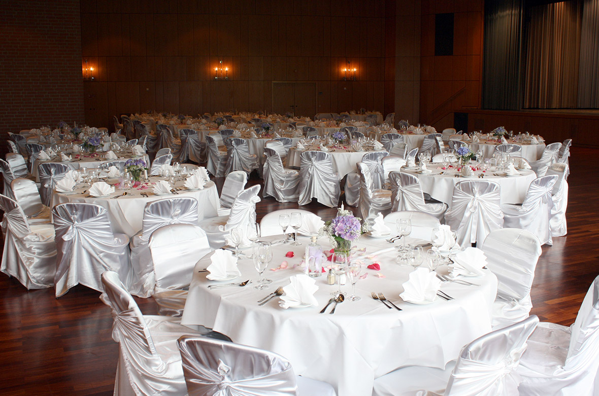 Die Festhalle Denkendorf bietet Ihnen für Ihre Hochzeitsfeier im Festsaal Platz für 80 bis 400 Hochzeitsgäste mit Tanzfläche und einer großen Bühne.